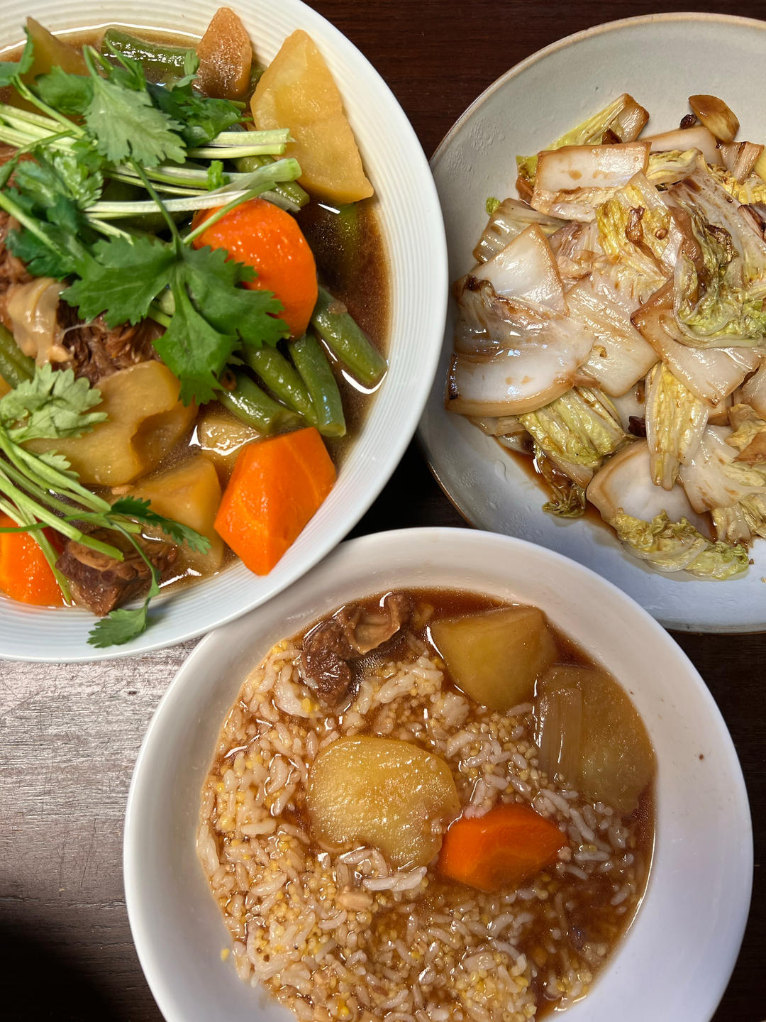 土豆烧牛肉烩饭 醋溜白菜