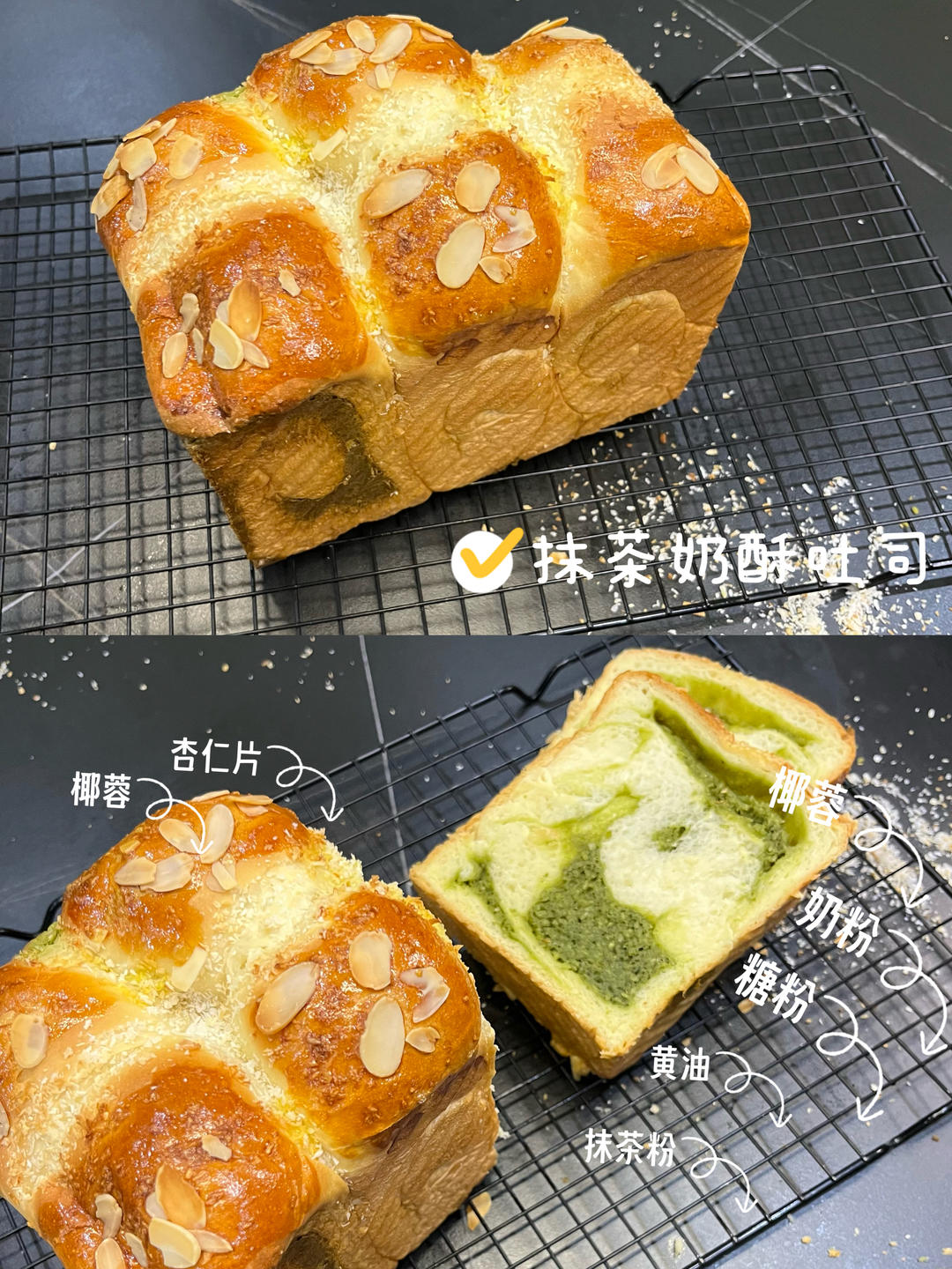 袁狐狸咩 做过 【奶酥吐司】|抹茶+可可两种口味|简单快手版 奶粉不够~椰蓉来凑~方太内嵌烤箱~好像没有上下火功能(可能我不会)~下火风炉210度10分钟~盖锡纸~上下火160度25分钟~下次试一下上下火180度~40分钟~5分钟盖锡纸~ 2023-04-18