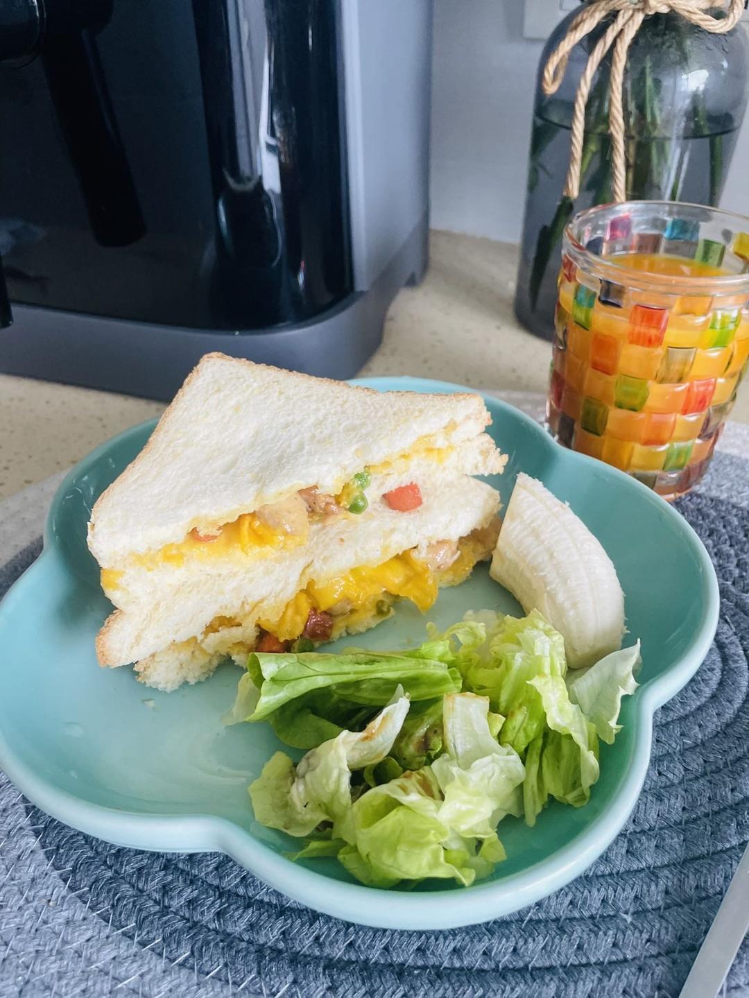 又是起床之后想偷懒的一天,当你不知道吃什么的时候,翻翻冰箱总能有收获,昨天的减脂晚餐是鸡胸肉炒豌豆,配上玉米面包片芝士片就是优质碳水➕蛋白质和膳食纤维都全了,松下空气炸锅选吐司🍞那档,面包片烤的焦香酥脆,温控太优秀了,三分钟搞定满足的一餐