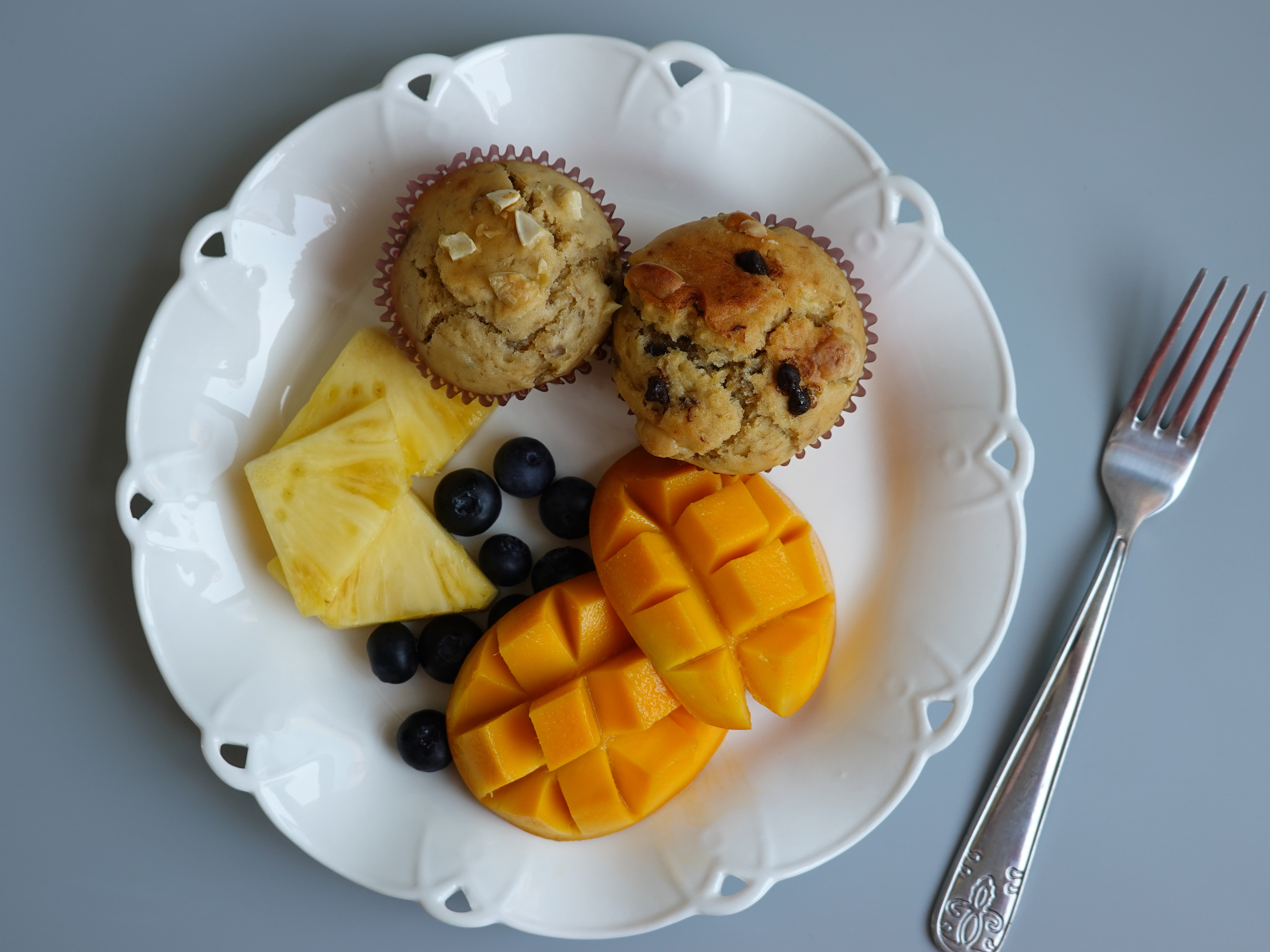 香蕉麦芬蛋糕+菠萝+蓝莓+小台芒
