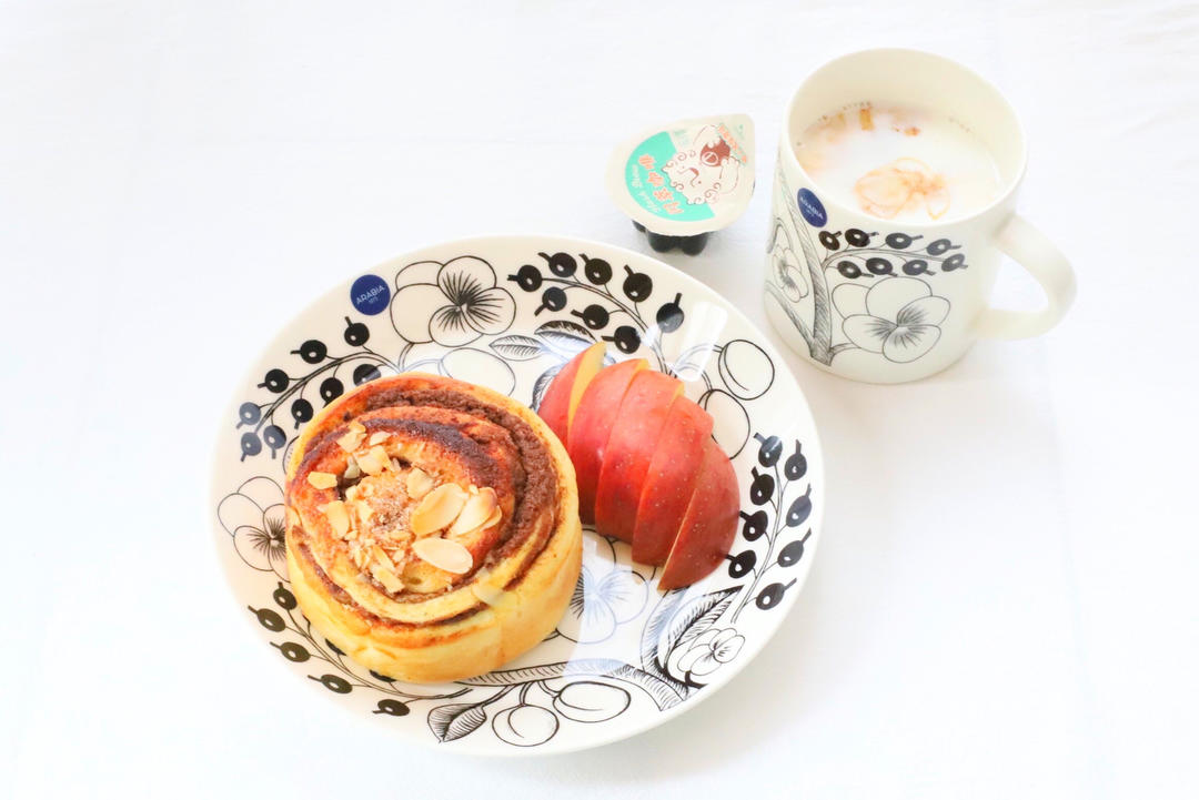 D1469 早餐:肉桂卷+苹果+咖啡牛奶