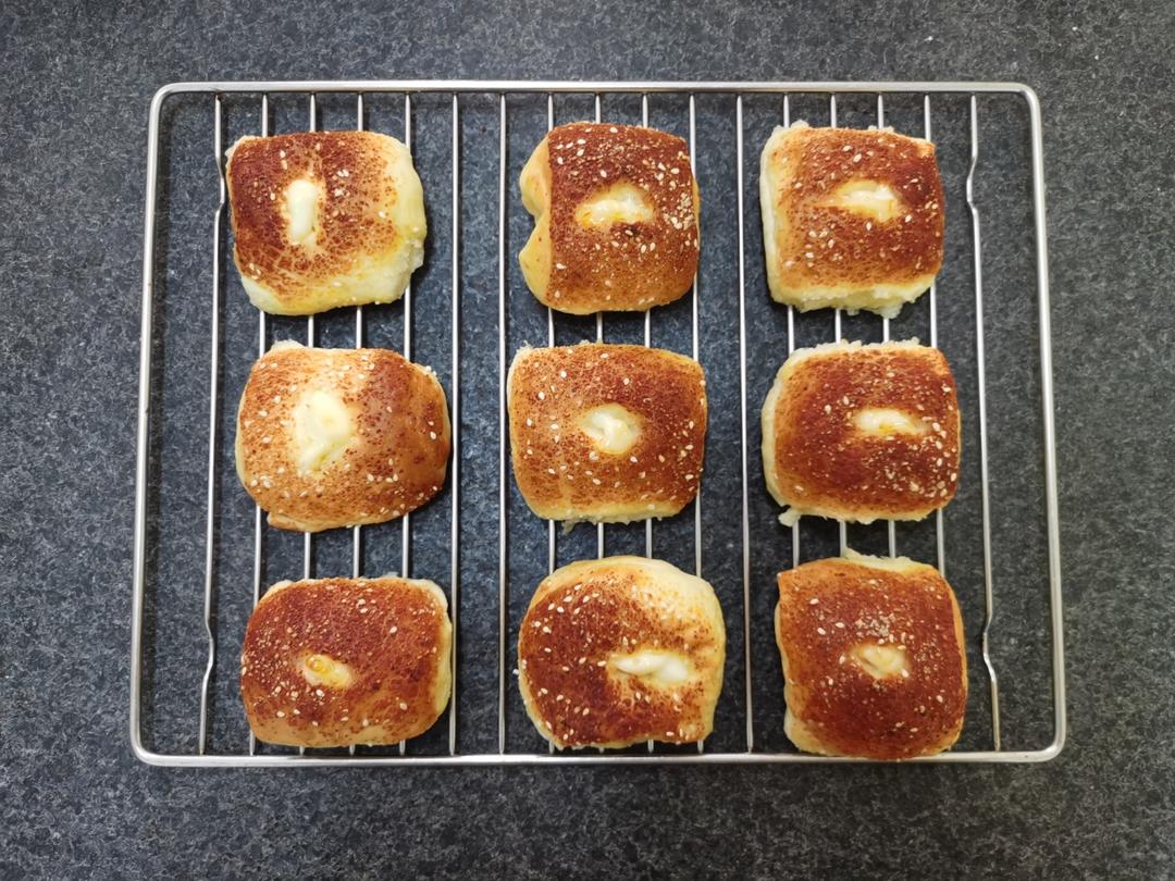 KsKitchen 做过 小可爱系列--迷你芝士肠仔包 #晚餐•2023年4月29日# 按0.75的配方做的,量大没这么多托盘,烤完粘在一起了,得撕开,所以造型有点丑。没有上下火,205℃烤了十分钟,烤箱温度不均匀,后五分钟换了方向,要注意上色过深。减五度的话又不够温度上色,还是按205℃好。用的大成烤肠,好吃,会再做。 2023-04-29