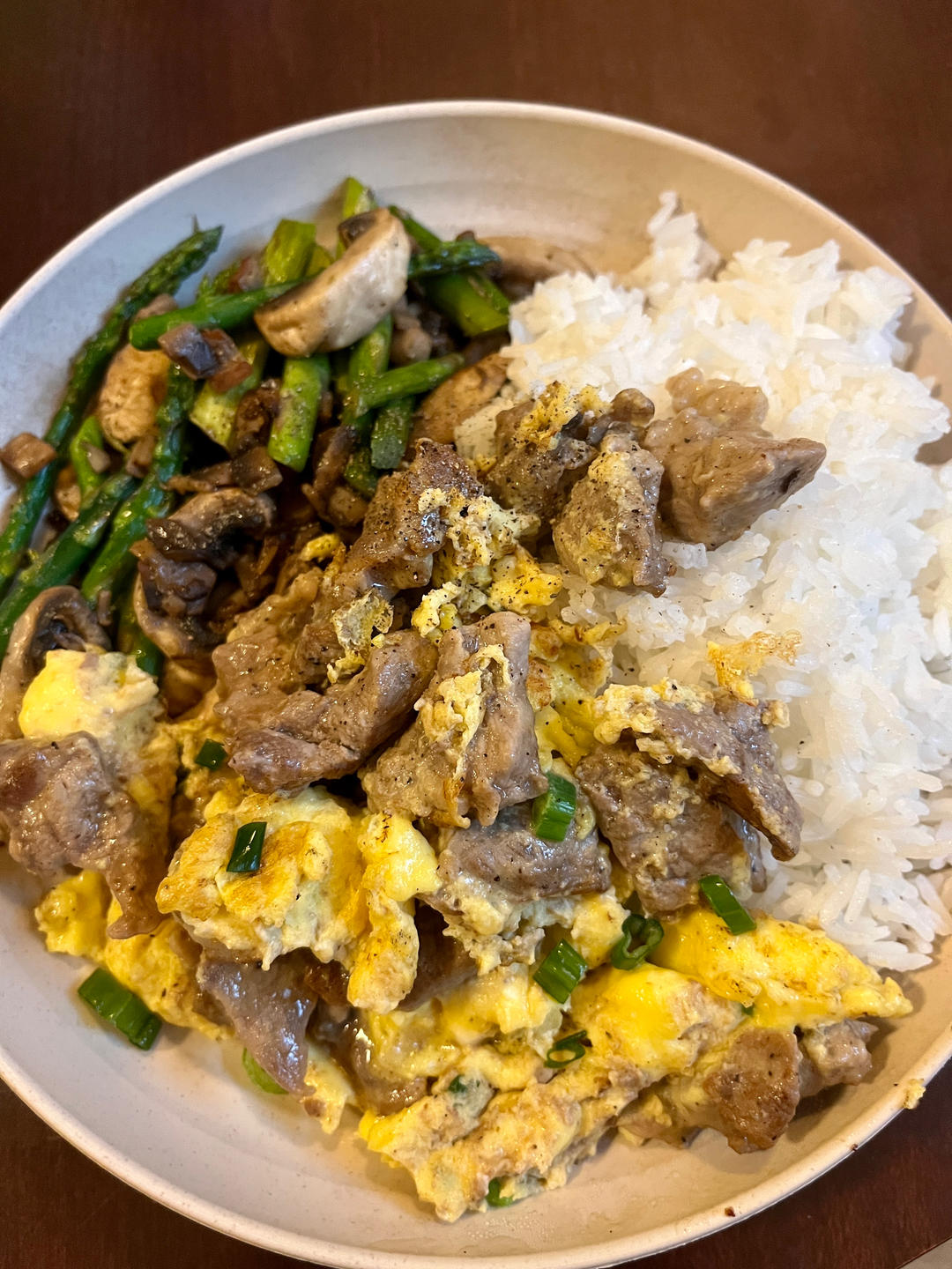 滑蛋牛肉和芦笋炒口蘑