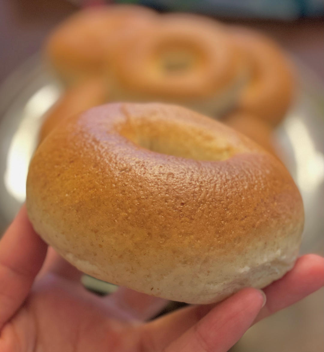 实验高手学烘焙 做过 全麦贝果🥯 做了方子的两倍,12个贝果。每个面团大概85-88克左右。方子很好,不过下次可以缩一点点量,减10%左右,大概75克一个?(小一点的贝果适合早晨小朋友抹了奶油奶酪和熏三文鱼当早饭)。 2023-05-01