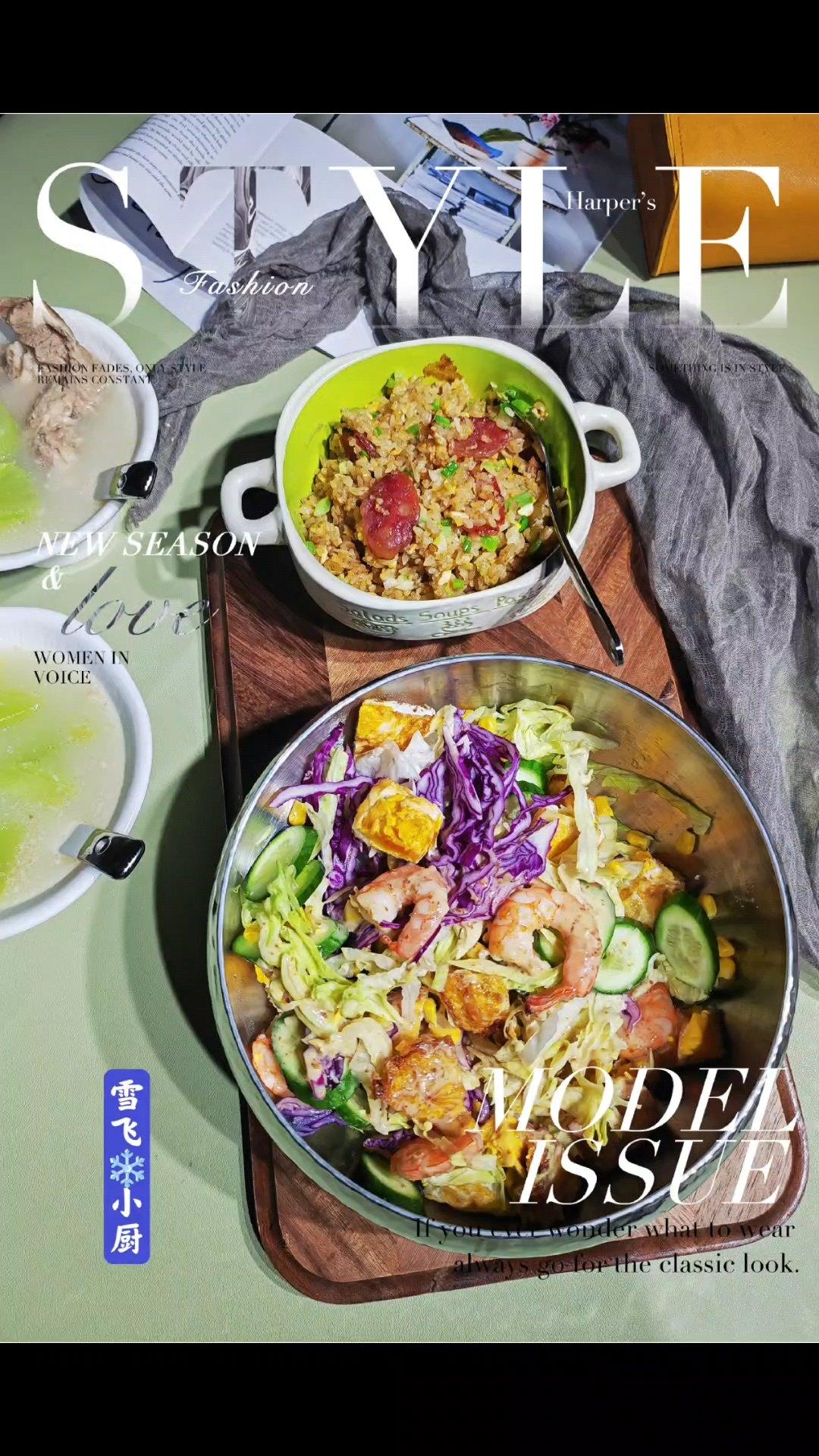雪飞小厨 做过 2023年05月04日 新购入一个颜值爆表的沙拉碗,太太太漂亮了🤩蔬菜进了它的肚瞬间上调了一个B格,满满的高级感扑面而来!好的手艺再有美器的加持,争取厨艺再递进一层🙈排骨莴笋汤+腊肠炒饭家的味道圆生菜+紫甘蓝+黄瓜片+玉米粒+虾仁+ 煎蛋,浇上焙煎芝麻沙拉汁即可。 2023-05-04