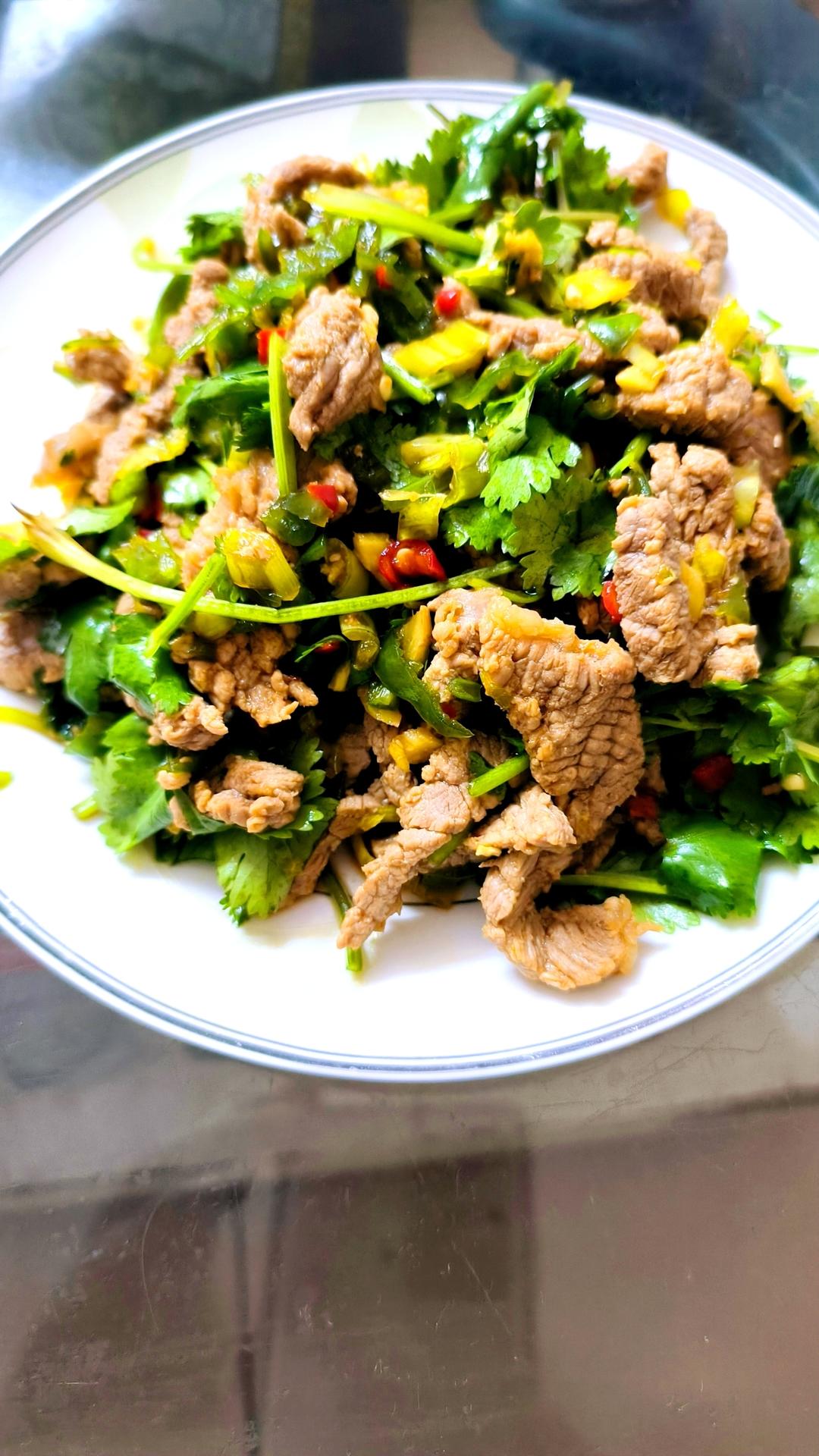 厨师长教你:“香菜牛肉”的家常做法,香嫩鲜辣,下饭一绝