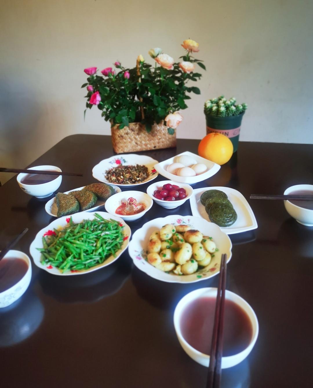 庭院早餐,家乡山水。