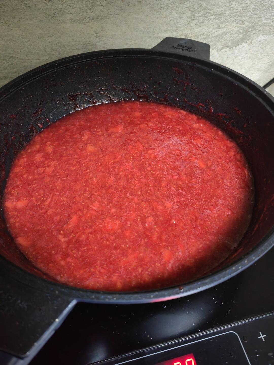 二斤草莓四两冰糖粉(研磨杯8速5秒),30分钟+20分钟,稠度甜度刚好