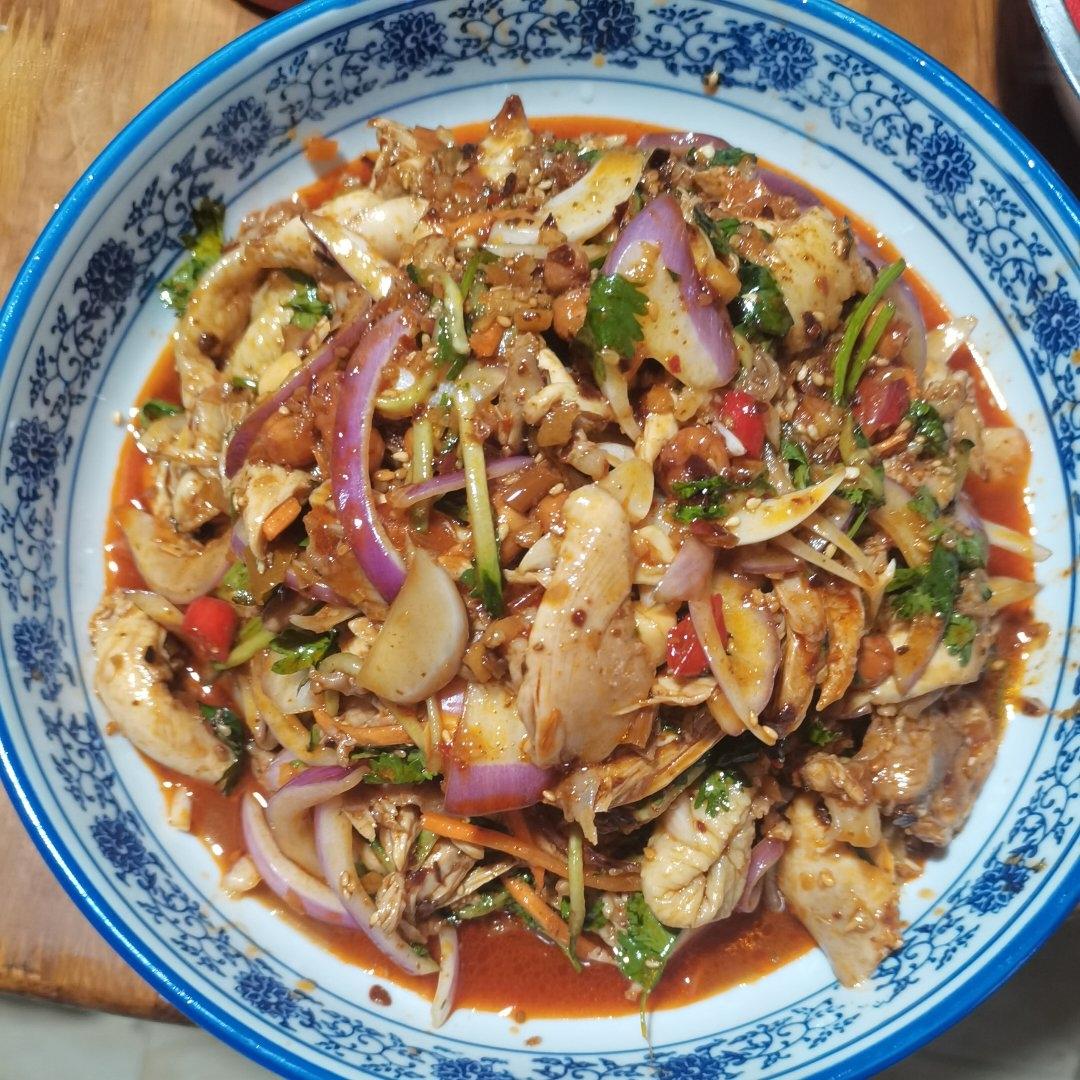 放了圆葱,黄瓜丝,花生米,超级好吃