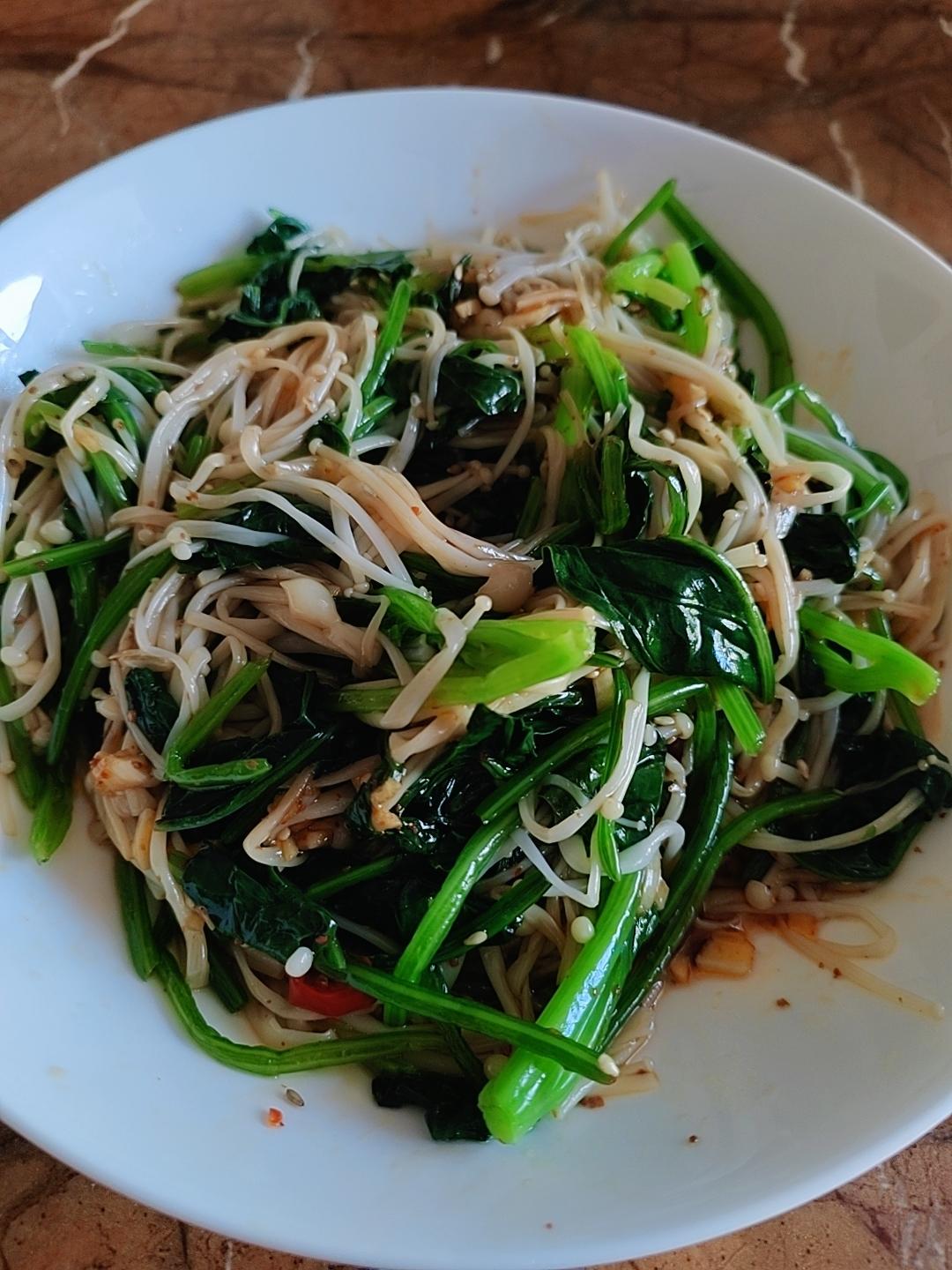 解馋减脂餐!酸辣开胃又下饭的菠菜拌金针菇
