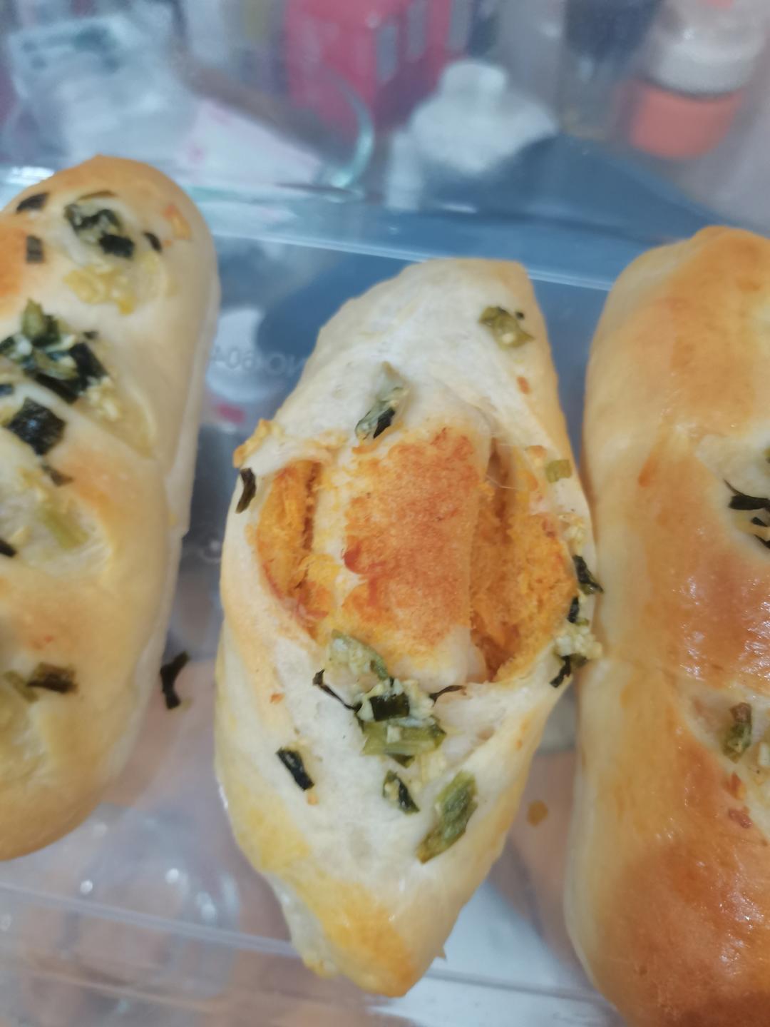 蒜香面包,不加鸡蛋牛奶和黄油,一次发酵