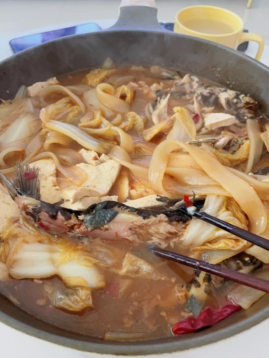 用了黄豆酱,郫县豆瓣酱,甜面酱三种酱混合,加了粉条白菜和豆腐,卖相不太好,味道还是可以的
