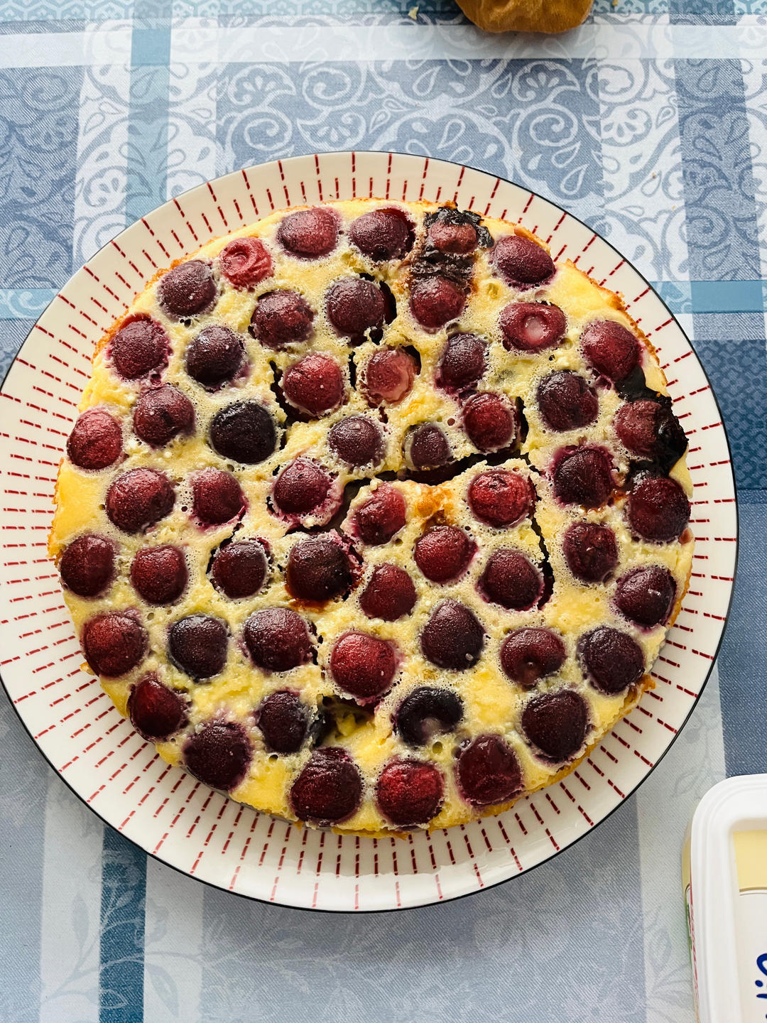 Chez-nous 做过 下午茶•2023年7月16日 法国夏日传统甜品,冰一下更好吃! clafoutis aux cerises 车厘子克拉芙蒂#下午茶•2023年7月16日# 2023-07-17