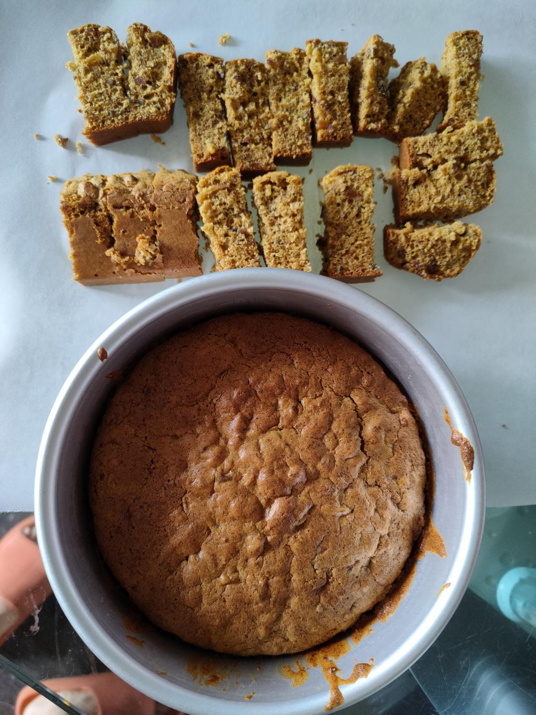 味道确实可以,可惜忘记之前的全蛋打发没有加核桃的枣糕是什么味道了,不知道哪个更好吃。