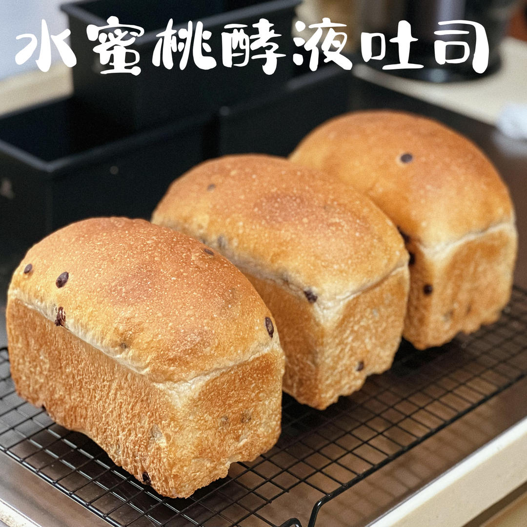 这次做的是水蜜桃的酵液,加了40克巧克力豆,下次可以再加点桃丁进去,味道可能会更丰富