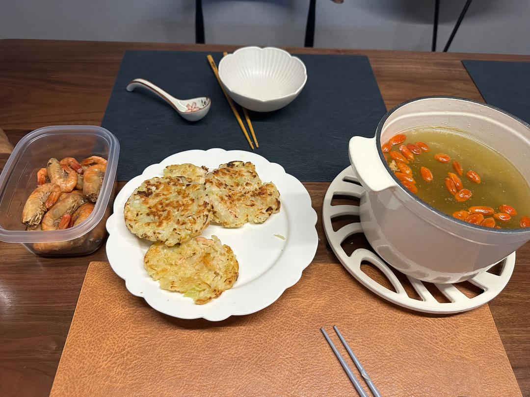 老黄瓜虾仁饼~相当水灵清新的黄瓜味。