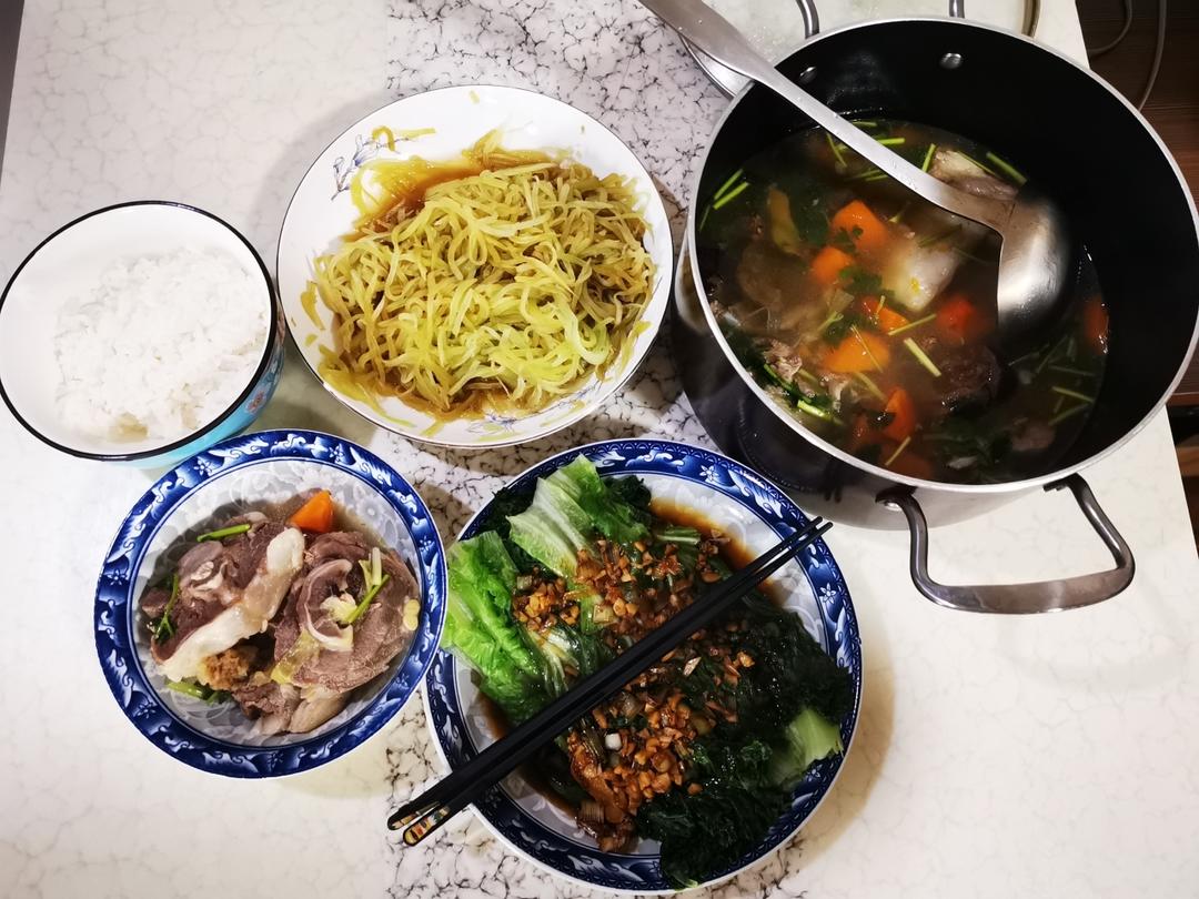拌青笋,排骨汤,白灼生菜