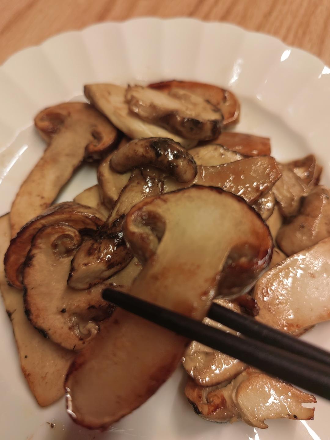 煎松茸,用猪油煎,不用盐