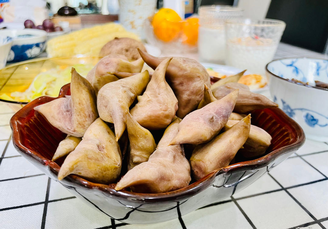 B妈小厨 做过 盐水菱角 20230812 星期六 农历六月廿六一个转身夏天成就故事,秋天变成风景秋天丰收季节早餐一边煮盐水菱角一边炖南瓜🎃小米粥昨天烧片儿川的半个葫芦加了豆芽菜葫芦丝里脊肉丝榨菜丝蒸玉米🌽和自己做的黑麦刀切煎蛋🍳燕麦鲜牛奶🥛葡萄🍇#早餐•2023年8月12日# 2023-08-12