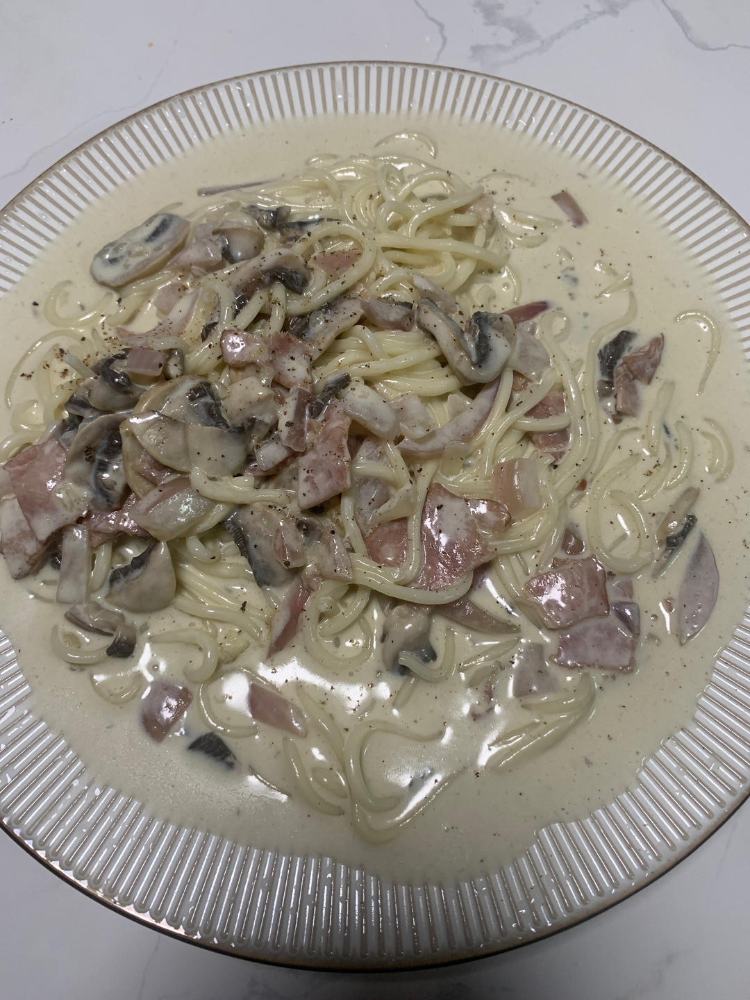 奶油蘑菇培根意大利面
