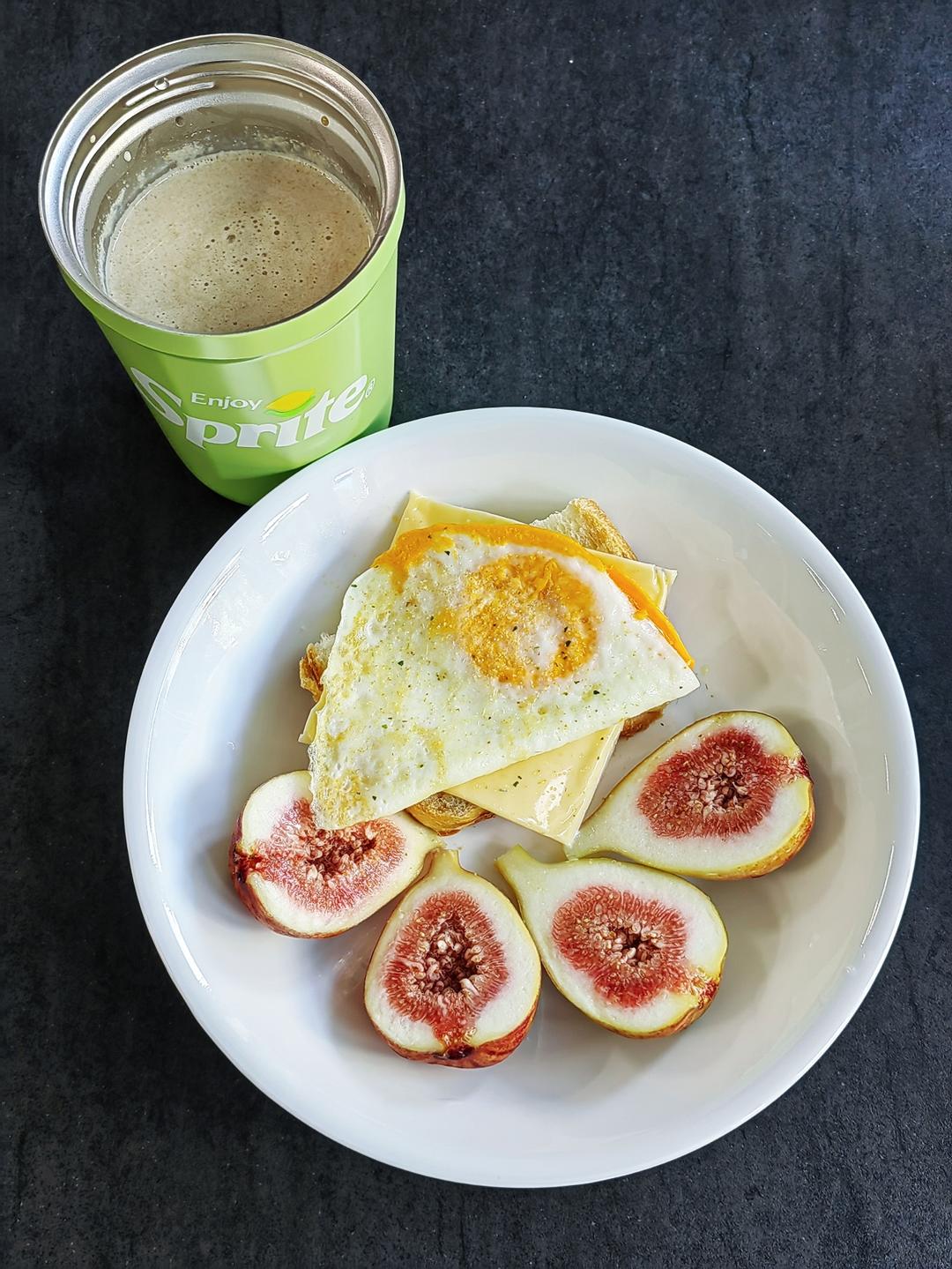 面包+奶酪片+煎鸡蛋+无花果+拿铁