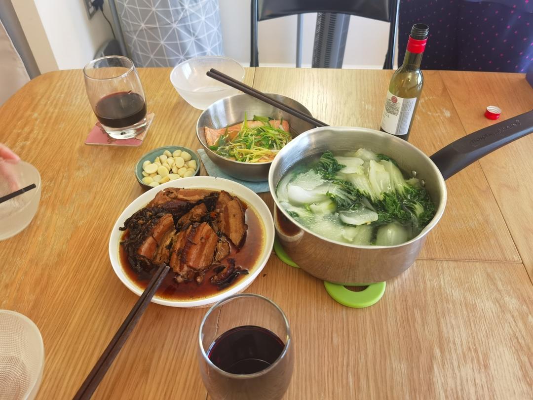 多姿多彩的退休生活 做过 晚餐•2023年8月27日 #晚餐•2023年8月27日# 在荷兰、法国玩了十多天,今天回伦敦了,在好朋友女儿家晚餐,咸烧白是我出去玩之前蒸的,她弄了一部分出来吃,今天我们把剩余的热来吃了,蒸三文鱼是同行朋友做的,我们三人吃的干干净净,连煮菜的汤都快喝完了,回家的感觉真好。 2023-08-28