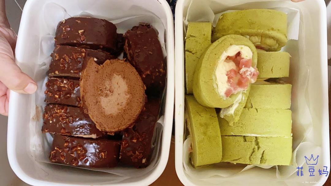 脆皮巧克力蛋糕卷&抹茶奶酪蜜桃蛋糕卷~秋天来了,突然特别想吃甜品,于是昨晚下班后来了精神,做了两个不同口味的蛋糕卷。因为同时还要给孩子做饭,所以一人在厨房手忙脚乱的,蛋糕卷卷的实在是丑,但是味道依然是非常好的。蛋糕卷柔软,甜度低,巧克力味道浓郁,好吃爆了,抹茶奶酪蜜桃的口感也很清新,蜜桃味浓郁。我的家人们这几天的早餐又有着落了。 #一家人的甜品# #下午茶 ☕#