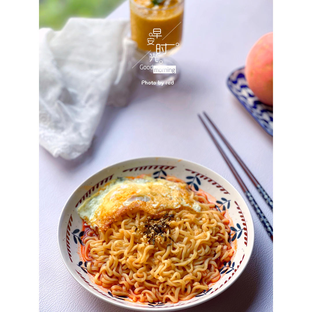 火鸡面加煎蛋,还有好喝的芒果冰沙