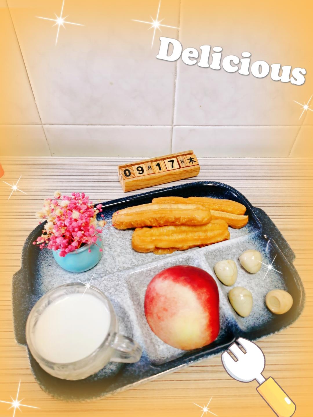 弦歌若梦 做过 早餐•2023年9月17日 9.17早餐日记: 油条+五香鹌鹑蛋+桃子+脱脂牛奶生活既要尽心,也要随心,既要决心,也要开心。🍰碳水:油条🍗蛋白质:牛奶/鹌鹑蛋🍋维生素:桃子#早餐•2023年9月17日# 2023-09-17