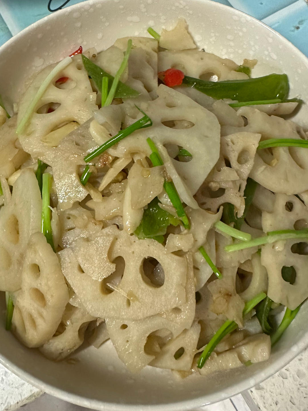 没有干红辣椒,用的新鲜红辣椒。这样炒的藕口感爽脆。