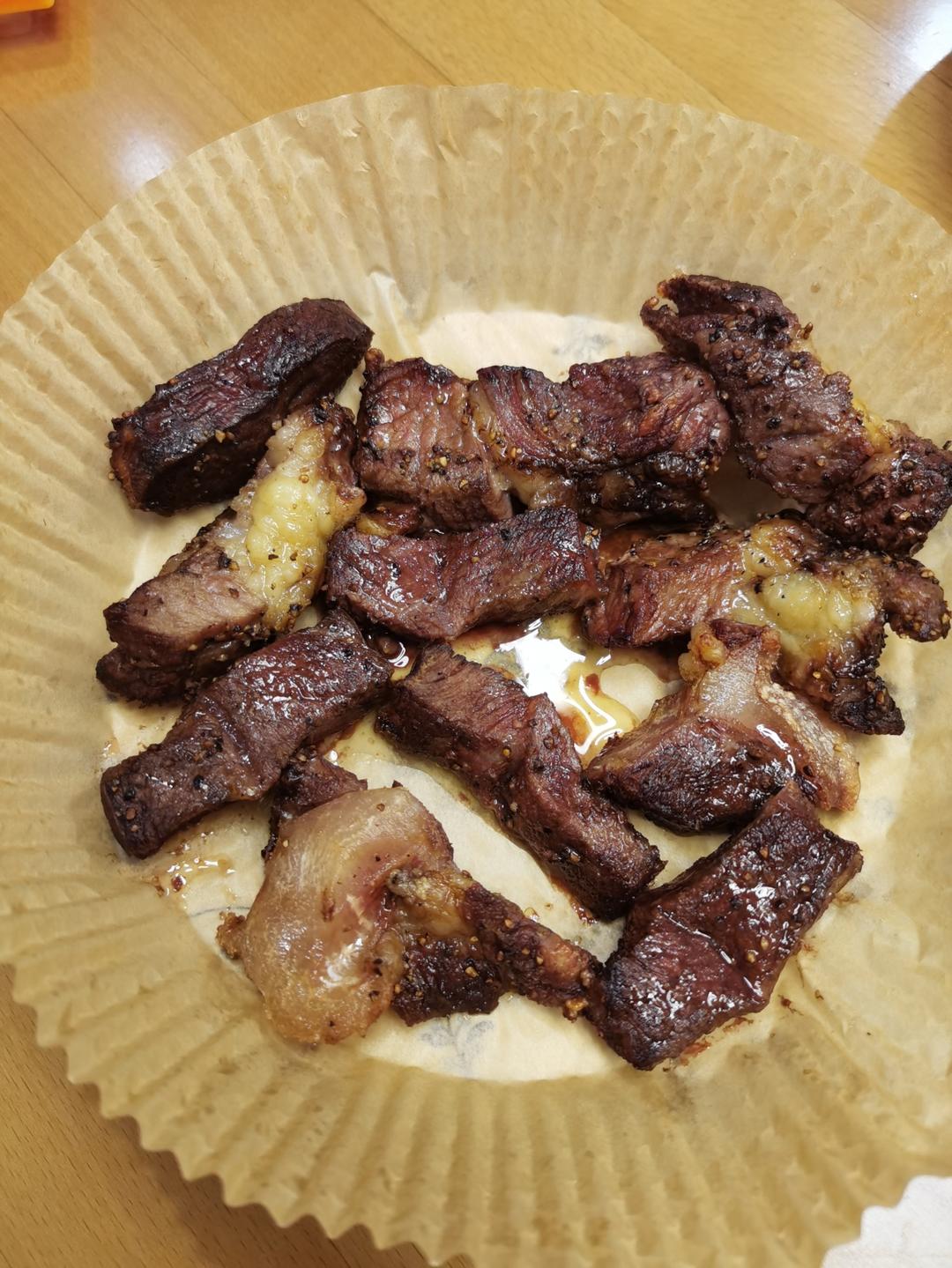 今日晚餐:空气炸锅牛排,蒸饺。