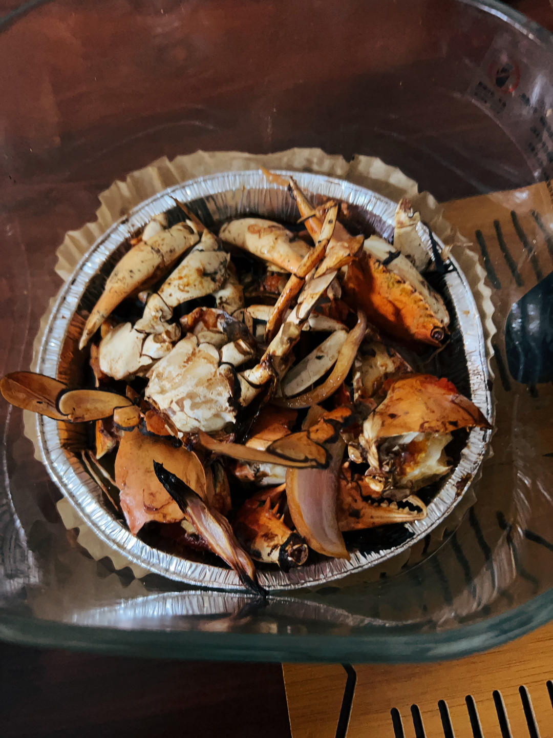 老公用空气炸锅做了焗螃蟹🦀️,为什么做这么香的好东西我却不能吃!