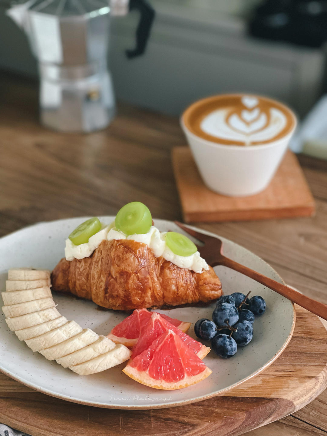 开放式可颂🥐香蕉🍌蓝莓🫐☕️拿铁