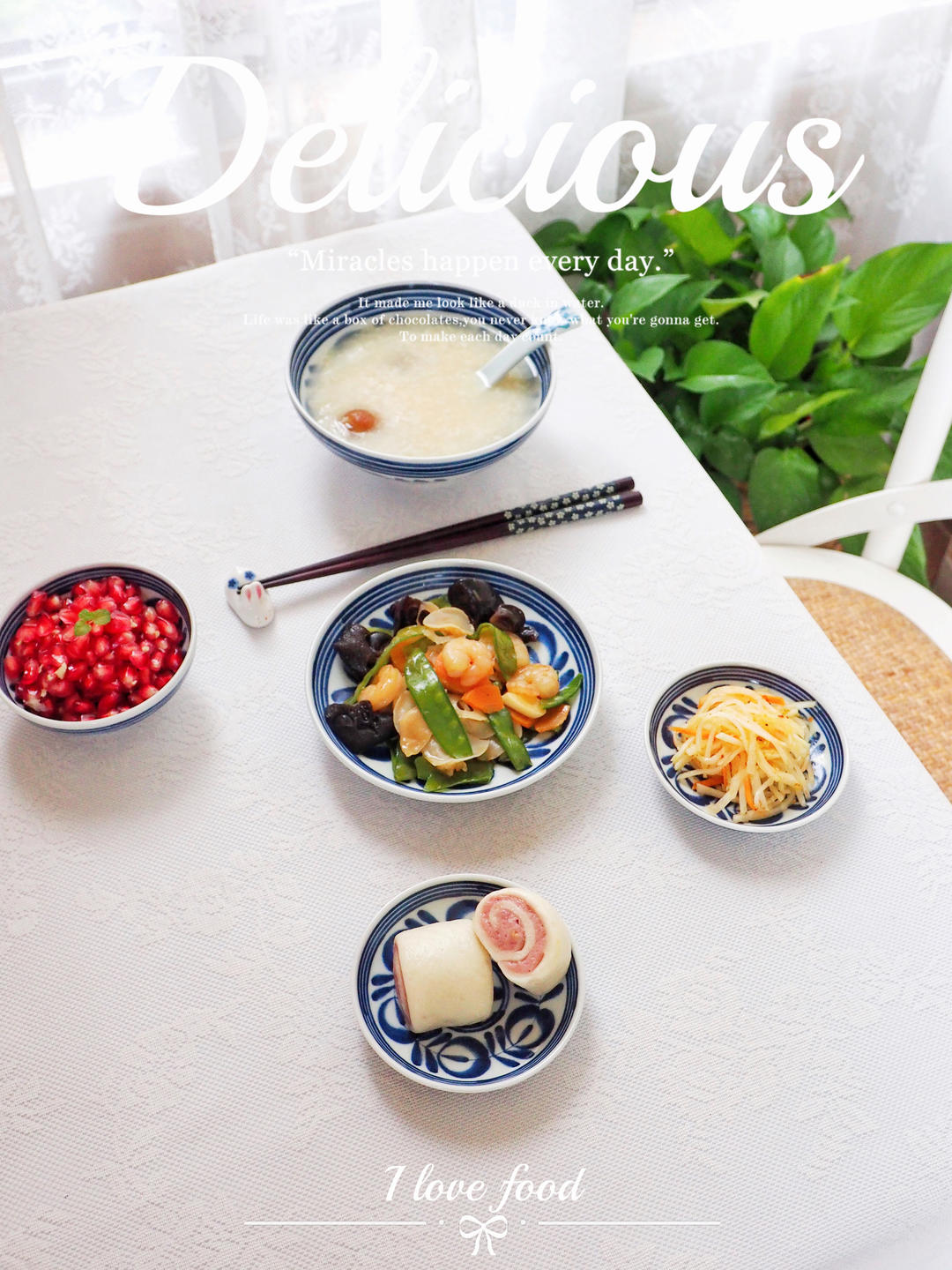 常姐爱烘焙 做过 早餐•2023年10月7日 #早餐•2023年10月7日# 早安¨̮ ᴴᴬᵛᴱ ᴬ ᴳᴼᴼᴰ ᵀᴵᴹᴱ紫薯小花卷、荷兰豆炒虾仁、萝卜丝、桂圆山药两米粥、软籽石榴~ 2023-10-07