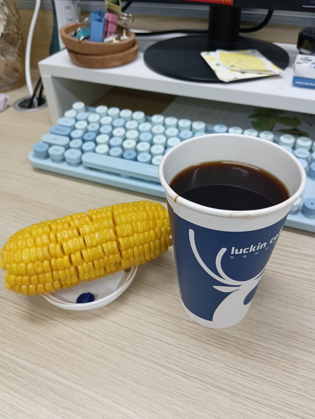 今天开始上班了,一根玉米棒子+咖啡,早八打工仔来不及精致摆盘,体重50.7,加油努力坚持