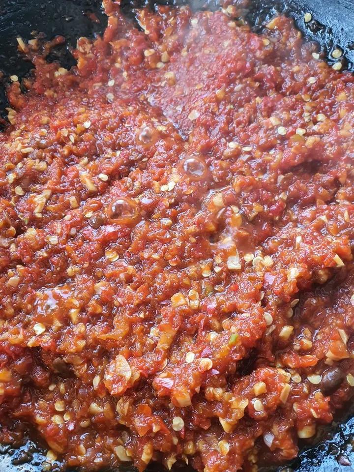 今天早市小红麻椒2元一斤,买了2块5,用绞肉机粉碎,绞肉机绞的辣椒有颗粒。水果水份太大,熬了15分钟有点稠 。