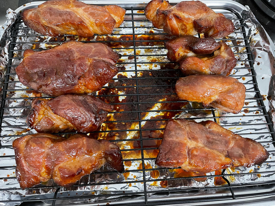 小老D 做过 广式叉烧(烤箱版) 尝试过炖的和烤的,还是更喜欢吃烤的叉烧,劲道不柴。烤制时间可以稍微久一些,200度烤15分钟后觉得最后可能不会熟透,所以180度阶段烤了半小时左右,剩的酱汁有点多不想浪费,所以中间刷了3次酱 2023-10-18