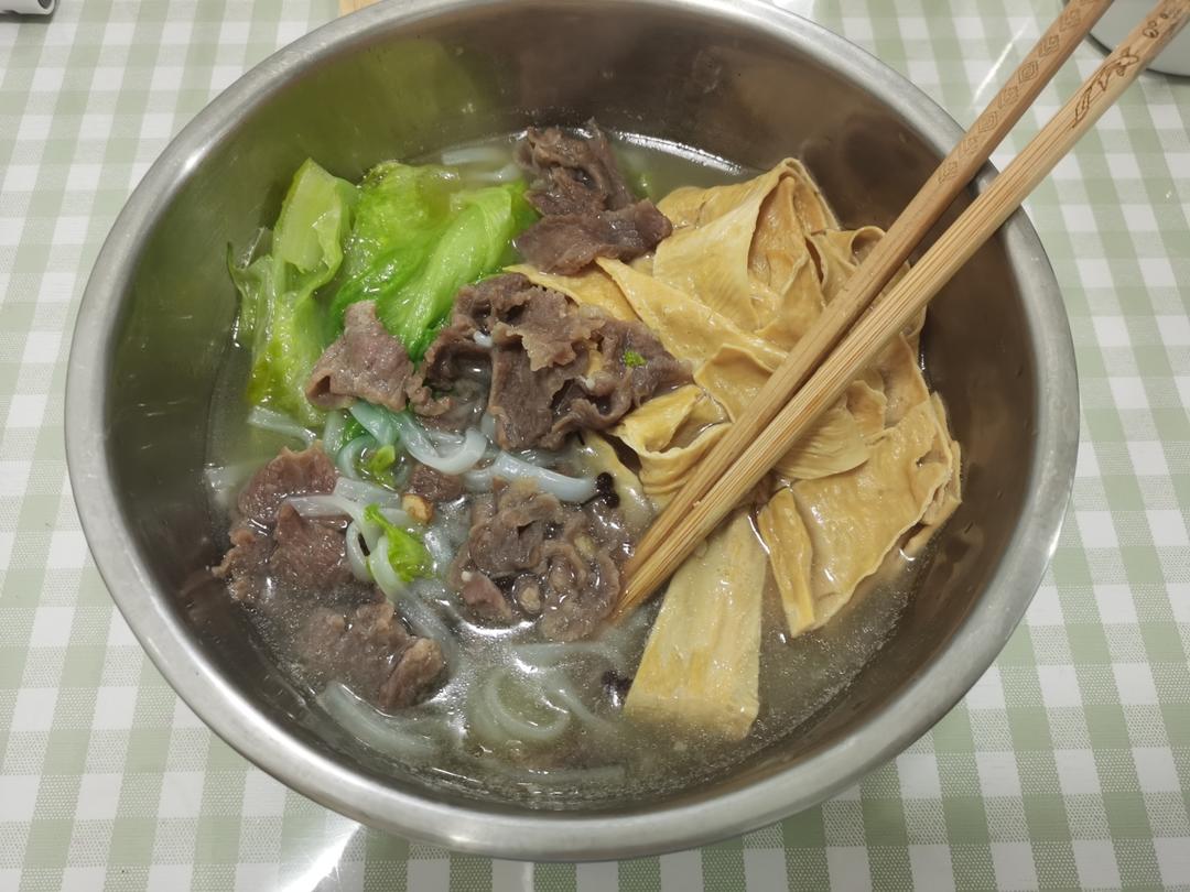 calorie123456 做过 2023年10月23日 牛肉粿条突出一个肉随便放,这个好像不是粿条不知道叫个啥,有点q没有河粉好吃,不是米做的是小麦粉,下锅可以先油炸蒜和花椒,再放白水加盐就已经很香了,很薄的牛肉只是腌了十分钟放大量小苏打和盐,腌制效果也很好,最后是把小苏打洗掉再涮肉 2023-10-23