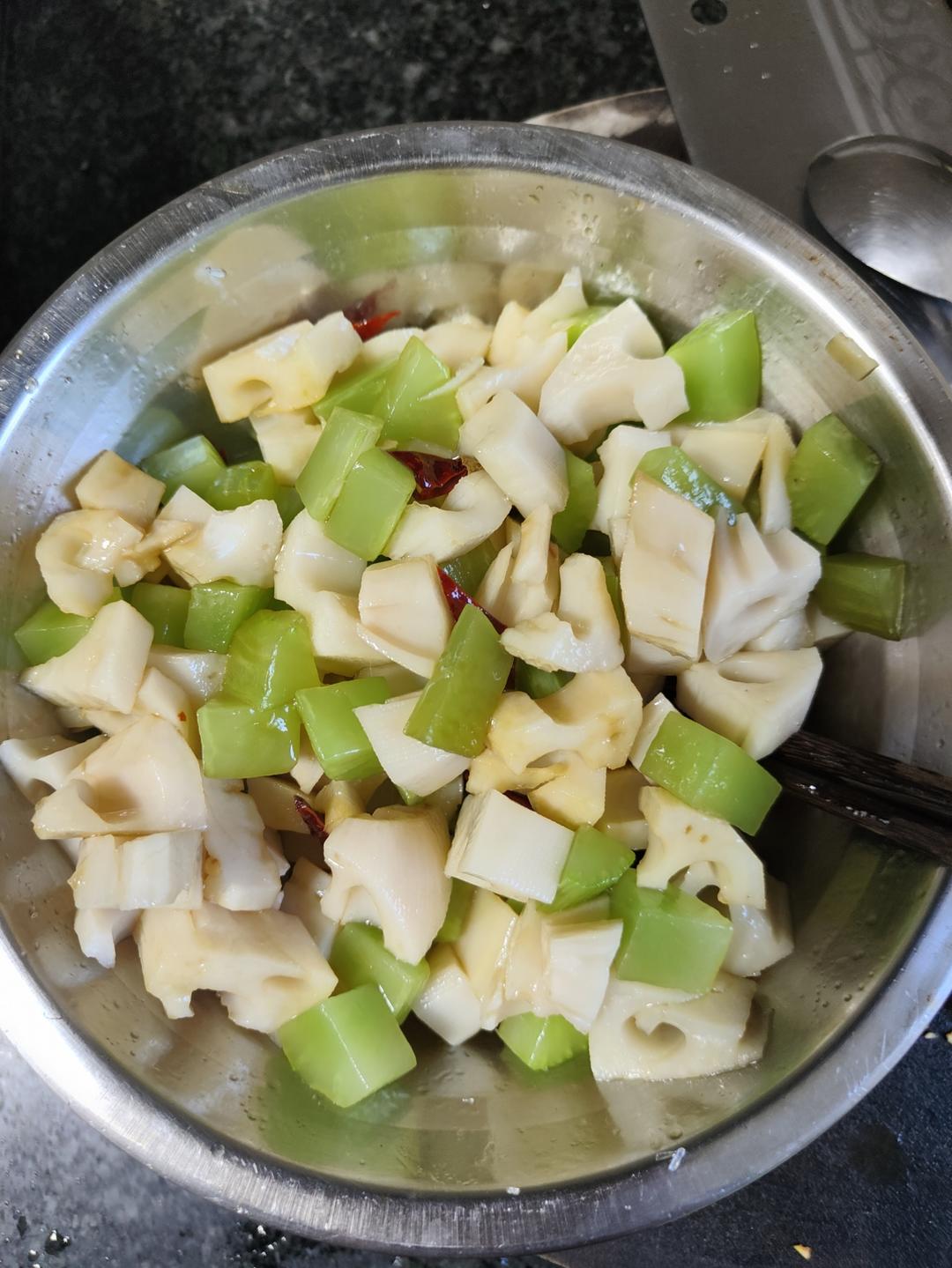 炝拌双丁(莲藕、莴笋,附凉拌油做法)