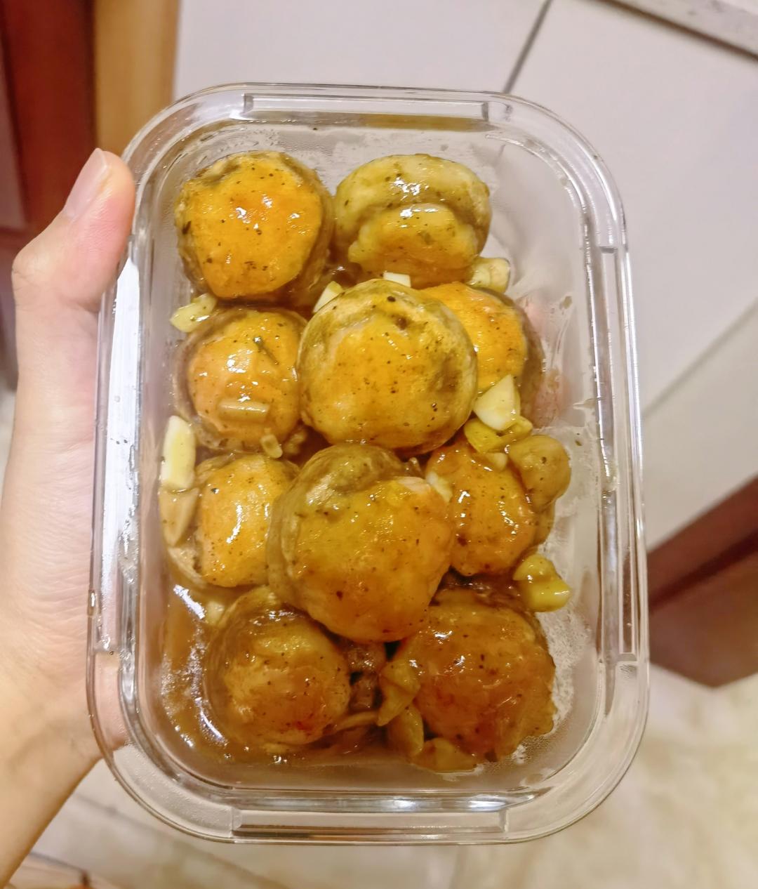 一口爆汁的虾滑酿口蘑