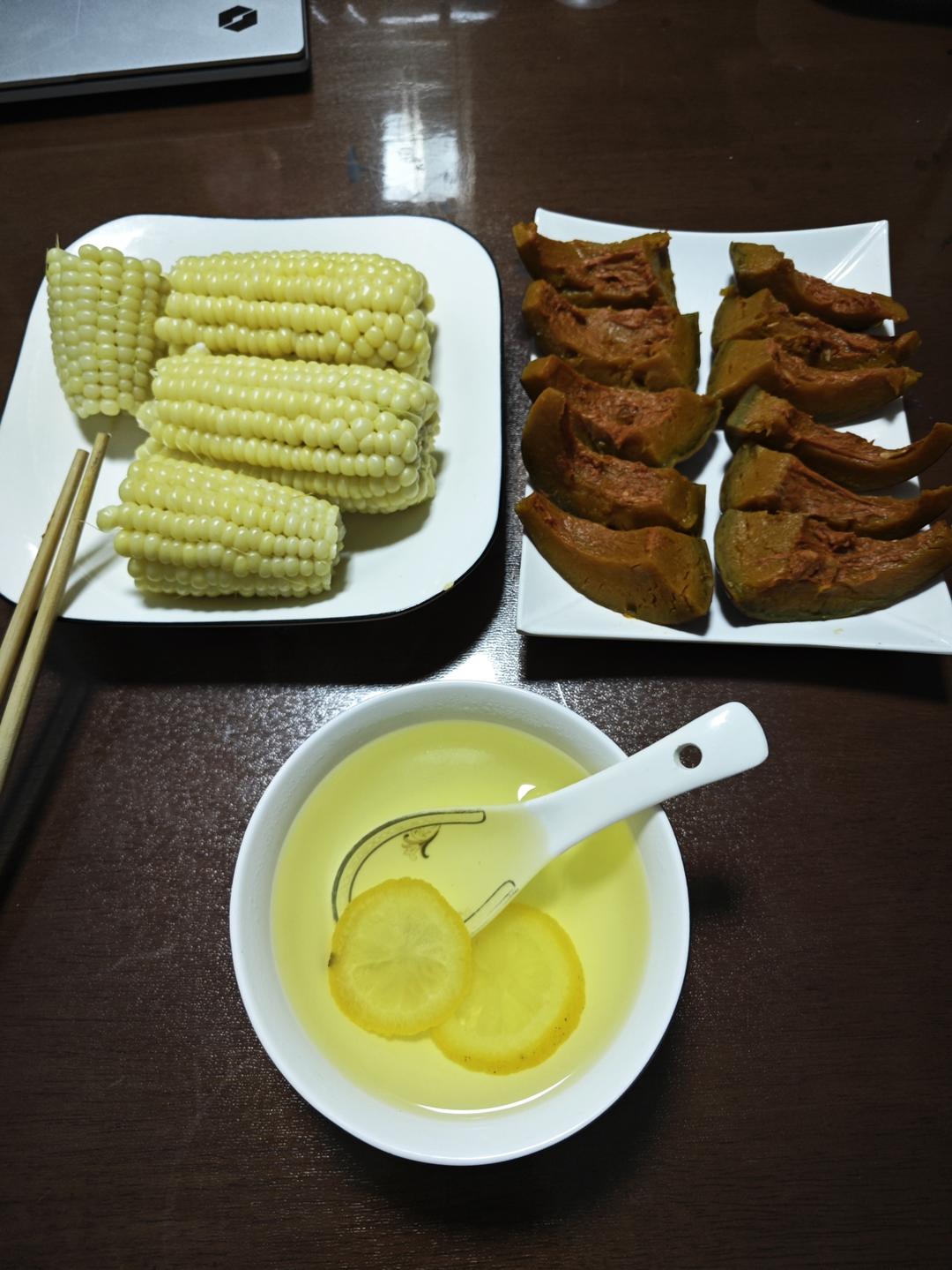 2个玉米,一大半南瓜。量太多了,各一半就行。