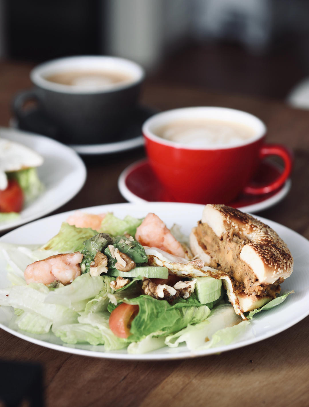 红薯泥花生酱🥯三明治和沙拉、咖啡