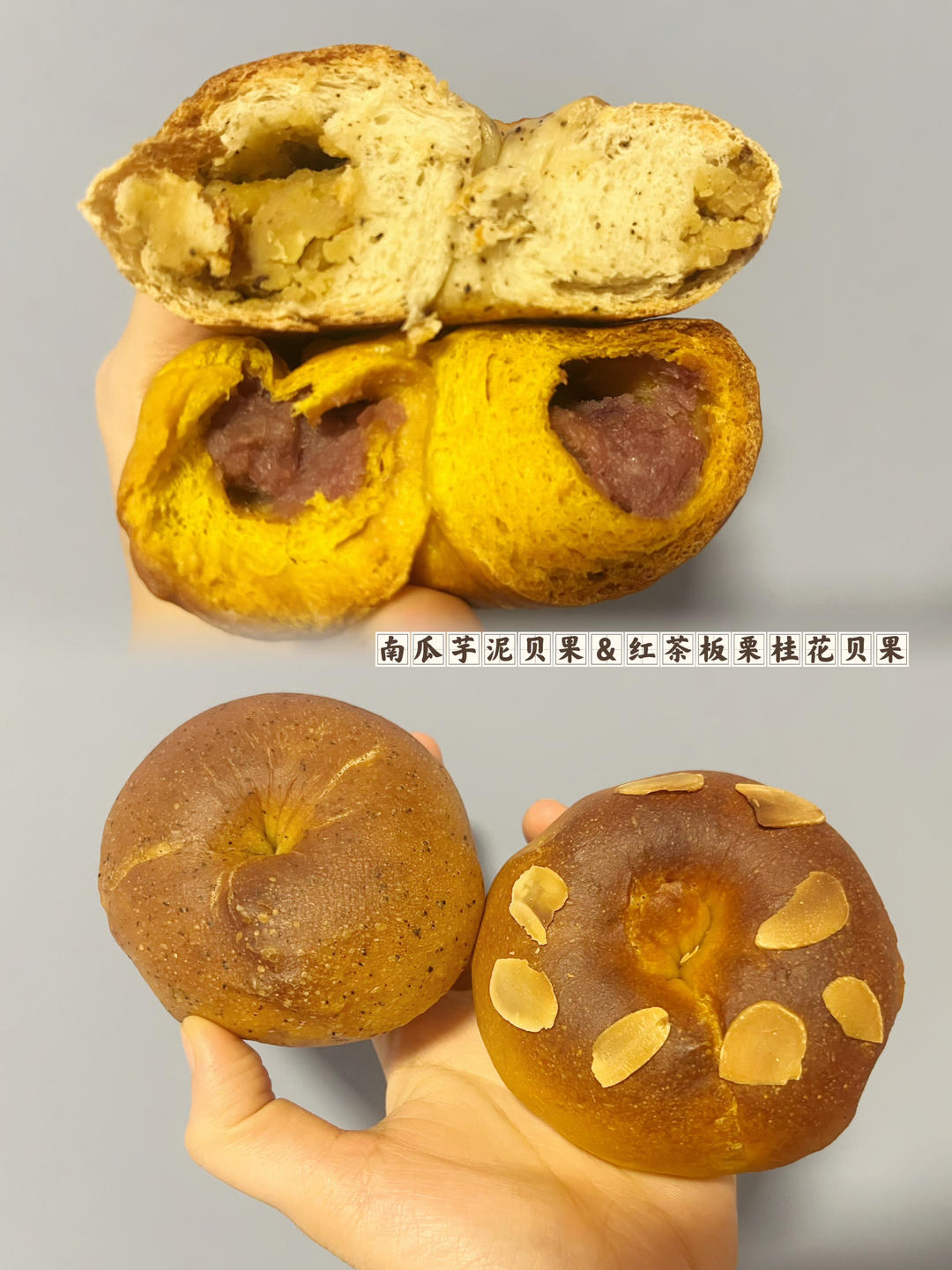 南瓜芋泥贝果&红茶栗子桂花贝果