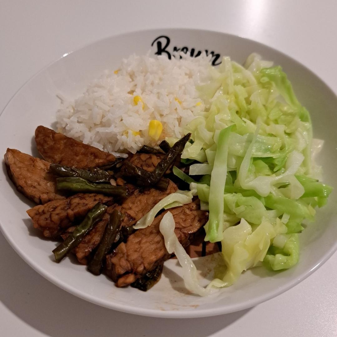 SY_na 做过 2023年11月08日 金香天贝清炒包菜玉米饭 🌽🍚 天贝切块煎至两面金黄盛起备用锅热油加入菜豆炒熟加入煎好的天贝生抽 3 Tbsp,老抽 3 Tbsp,糖 2 tsp,水 2 Tbsp翻炒均匀即可 2023-11-08