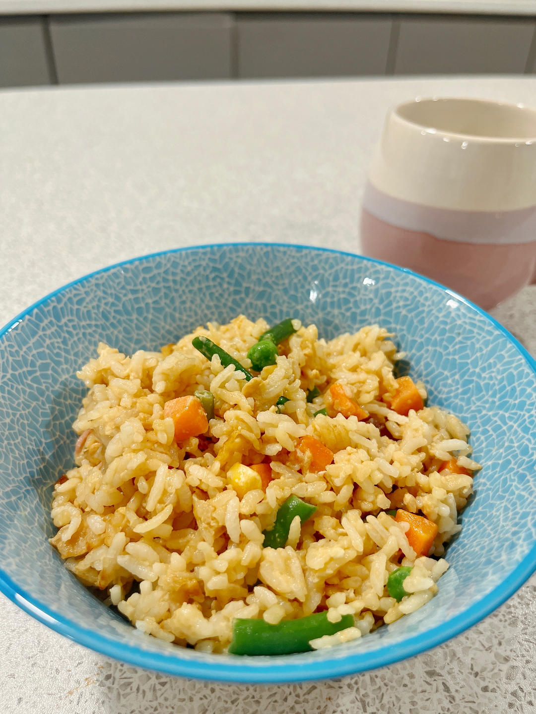 把鸡蛋放在剩饭里,再放入其他调料,最后去炒,效果更佳😋