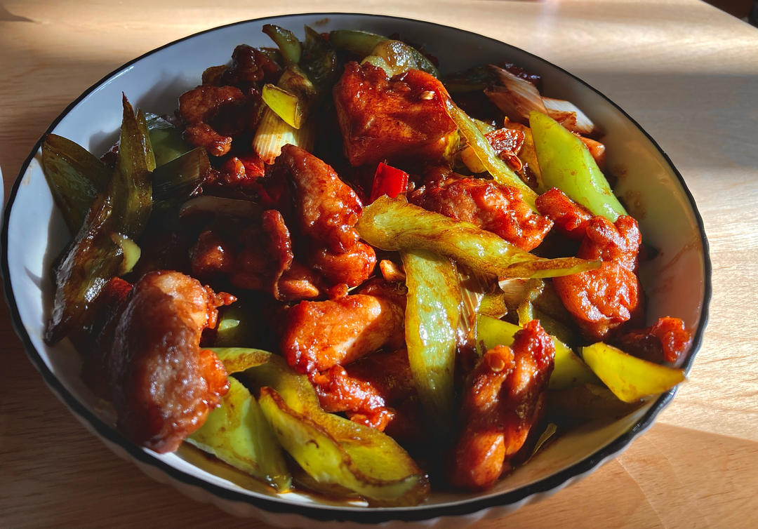 迷糊99 做过 午餐•2023年11月30日 #午餐•2023年11月30日# 穷人鸡丁。鸡腿肉300克,尖椒两根。鸡丁用生抽,十三香抓一下,淀粉两勺,一勺油,抓匀。爆炒。加干辣椒,花椒几颗,尖椒,爆炒。加生抽,老抽,炒熟出锅 2023-11-30