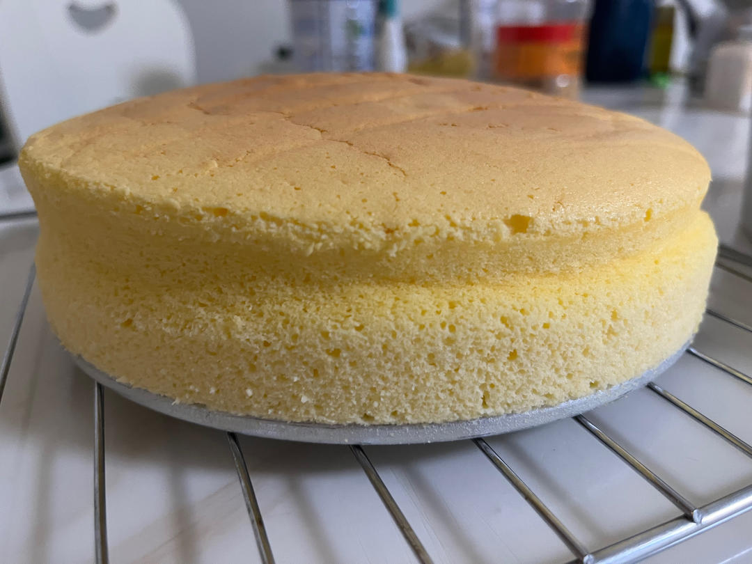 翻倍的量做了8寸的,刚烤完的时候好好的,闷半小时就有点回缩,底部有点湿不知道是不是正常,味道还可以!