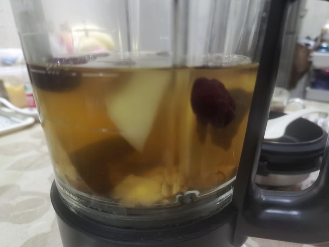 莲子,百合,红枣,秋月梨,陈皮水!稍凉后加了蜂蜜~~~