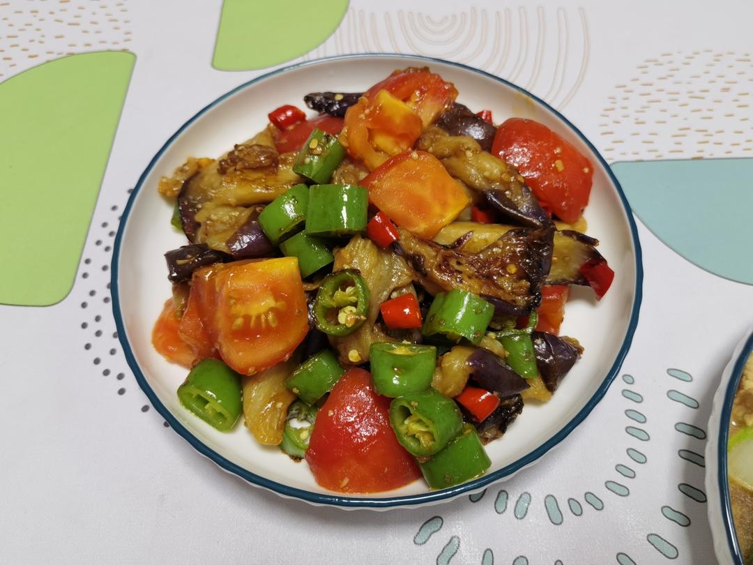 红烧茄子(佐西红柿尖椒)