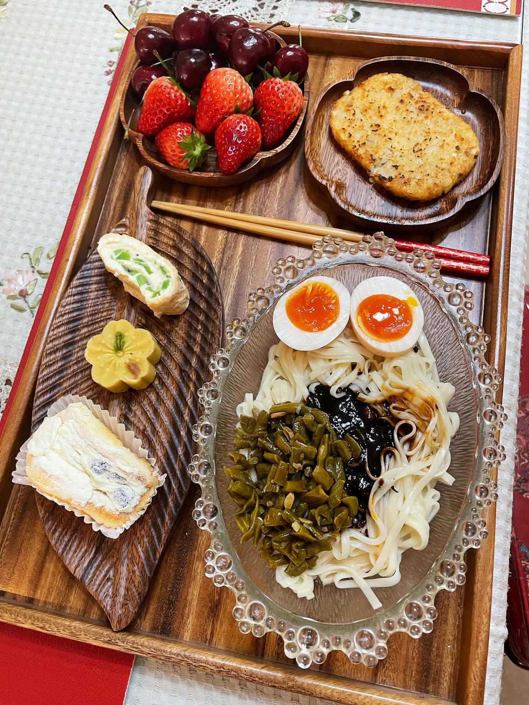 Lisajulie 做过 LLove #LLove# #早餐•2023年12月21日# 1️⃣葱油拌面🍜(黄天鹅溏心蛋)2️⃣酸奶夹子蛋糕🍰、桂花绿豆糕、新疆奶皮子3️⃣土豆饼🥔4️⃣草莓🍓车厘子🍒 2023-12-21